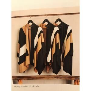 NWT Parrish LA, Stevie Poncho, Beautiful Camel Black &. White Sweater One Size