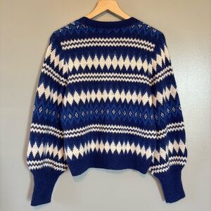 NWT Part Two Medium Alpaca Wool Blend Sweater Blue Knit Jacquard Fair Isle