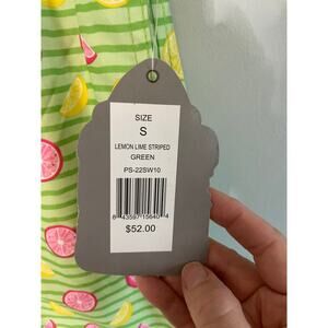 NWT Party Shark Men’s Small bathing suit swim shorts, citrus fruit on green stripes, lined