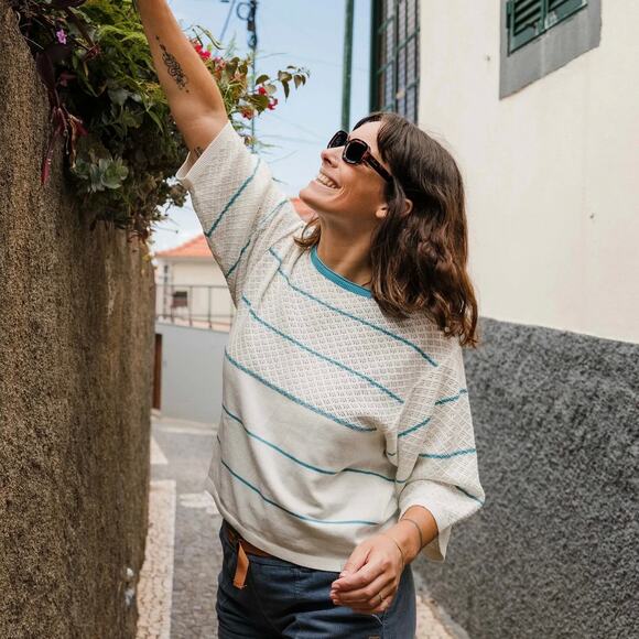 Made for those transitional days, the Migrate is a soft organic cotton knit with a shorter cropped sleeve and an easy going boxy fit, perfect for throwing on over your favourite road trip outfit.