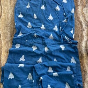 NWT- Passion Lilie Blue & White Ikat Print Cap Sleeve Jumpsuit