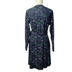 NWT Passion Lilie Sz L Navy Blue Micro Floral True Wrap Dress Organic Cotton