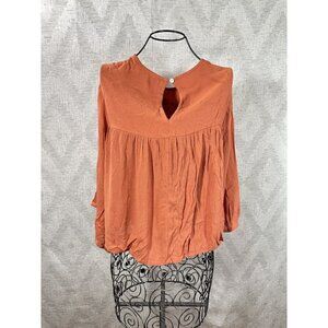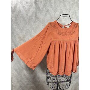 NWT Passport orange floral embroidered flutter sleeve blouse size S