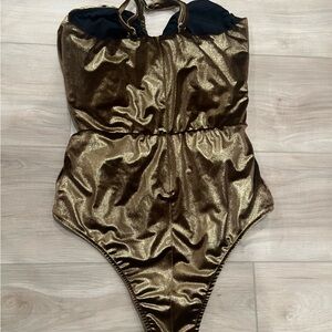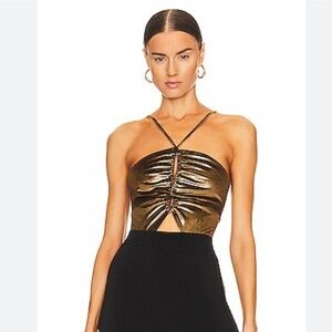 NWT PatBo Metallic Lace-Up Cut Out Bodysuit Gold L
