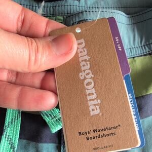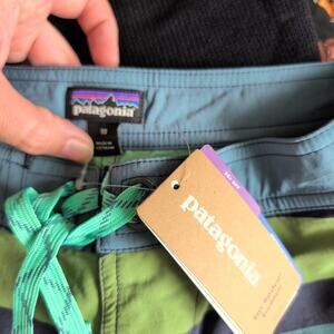 NWT Patagonia Boys Wavefarer Board Shorts Size 10 - Blue Green Swim Trunks New!