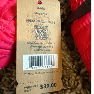 NWT Patagonia Infant Baby Puff Mitts Mittens Magic Pink 3-6 months