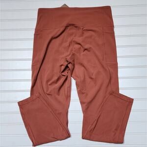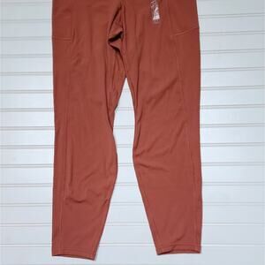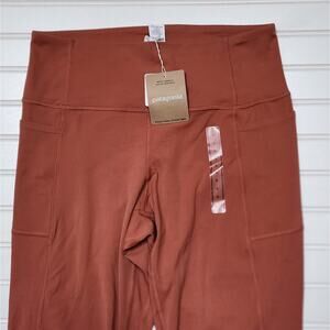 NWT Patagonia Women's Maipo 7/8 Stash Tights/Leggings, size L, color is called Burl Red, soft, wicking fabric, fast-drying performance, high-rise performance tights with a 7/8 length, two drop-in side pockets easily fit a phone or other items on the go, inseam is 26", versatile, lightweight, performance-oriented, fully featured tights are made for the sort of multisport activity that Chile's Maipo Valley is known for—from running to climbing to hiking to yoga, plus everything in between. Retail $119.