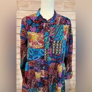 Patchwork Button Front cotton Dress size small. 20" Pit to pit and 34" long. Smoke free home.