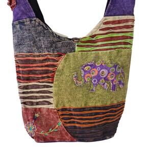 NWT Path of Spirit Elephant Purple Green Boho Tote Bag Phone Pocket 15 x 13
