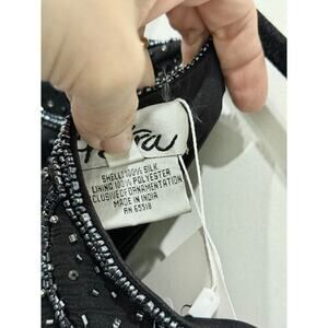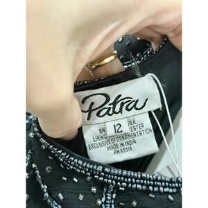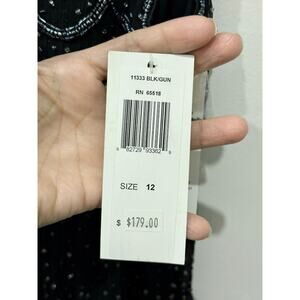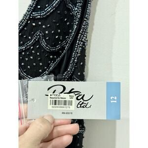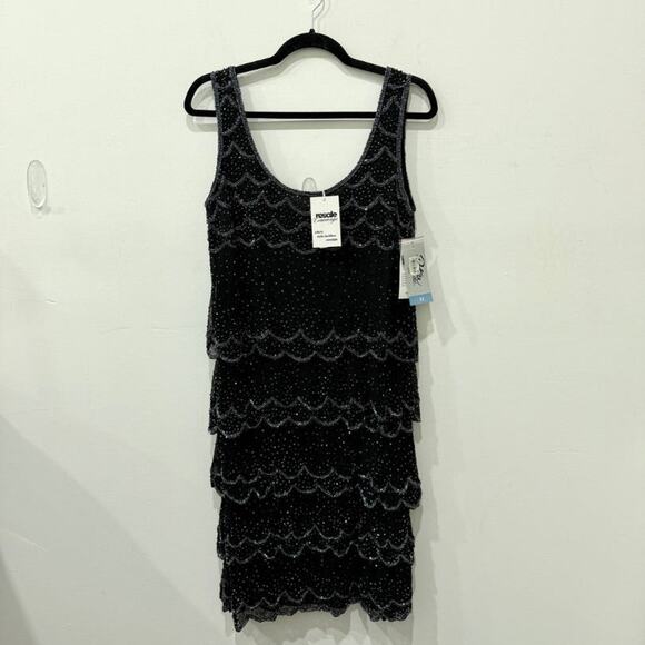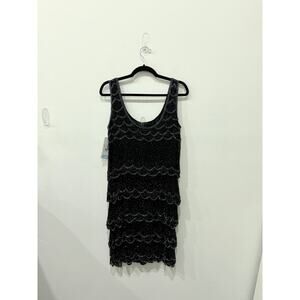 NWT Patra Mesh & Stones Beaded Scalloped Tiered Midi Dress Black Womens Size 12