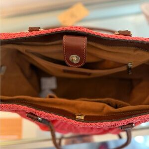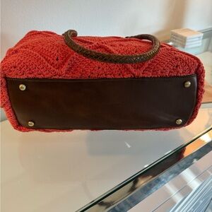 Beautiful new word, tag Patricia Nash Diamond Leadri crocheted tote. Beautiful addition to any outfit and great for travel. I have two of these available. I had to choose red and the color selection because Cole was not available, the color is coral or some may call his salmon.