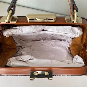 "The Gracchi is our timeline tailored frame bag inspired by Patricia's vintage shopping treasures and memories of her grandmother. A refined feminine style in a vintage leather-wrapped frame satchel, this bag has a metal push-lock and leather pull which allows the bag to easily open wide. You can change up the style with either carrying it by the removable crossbody strap." - patricianash.com
