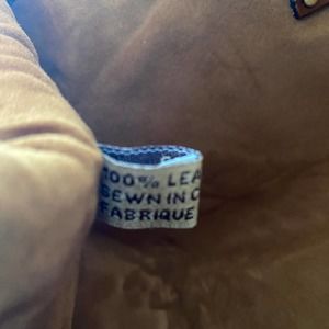 Interior: 1 zip pocket, 2 slip pockets. Faux suede lining.