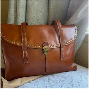 Patricia Nash Verbania Brown Leather Studded Satchel Purse