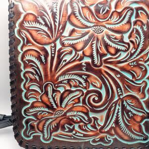 Patricia Nash women’s shoulder bag crafted in rich hand-tooled leather with a floral embossed design. New with tags. Made with heirloom-level craftsmanship, this piece blends old-world artistry with modern function. The structured silhouette, whipstitched edges, and soft interior lining give it a classic weight and tactile beauty that defines the brand’s heritage identity.