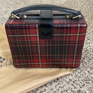 NWT Patricia Nash red/black/gold plaid leather square box handbag w/ shoulder strap - bought for holiday time and never wore