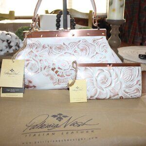 NWT Patricia Nash white copper handbag and matching wallet STUNNING SET!!!