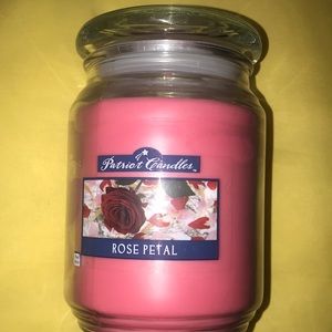 New unburnt Rose Petal large candle by Patriot Candles. This candle smells amazing and is new. Large sized glass jar in pink color. 20 Oz size.