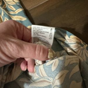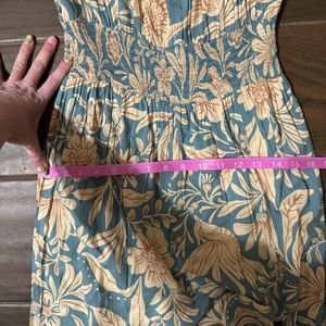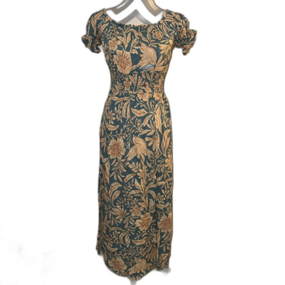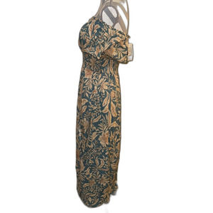 NWT Patrons of Peach Blue Floral Print Smocked Short Sleeve Maxi Dress S