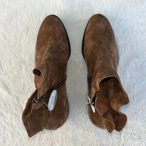 New Condition with tags. Retails for $495. No signs of wear on the soles. Smooth Silk Suede upper, Leather Lining and Leather & Rubber sole. Made in Austria. Almond Toe. Side zipper for easy on and off. Please check photos carefully for more information and details.