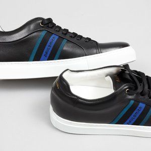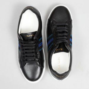 NWT Paul Smith Basso Black Leather Green & Blue Stripe Sneaker