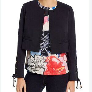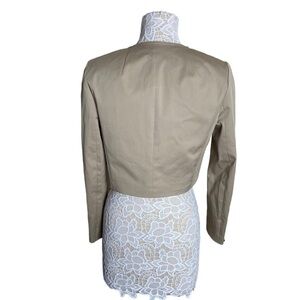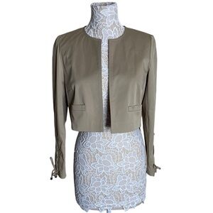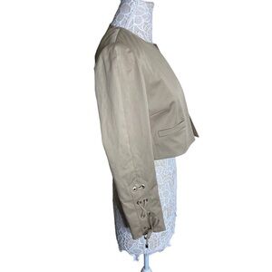 NWT Paule Ka Collarless Lace Up Sleeve Cropped Jacket in Beige size 4