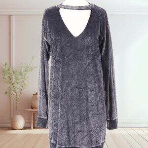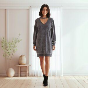 NWT Peach Love California Velvet Cutout V-Neck Mini Dress S | Grey Sweatshirt Dress