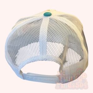 NWT Peachy C Turquoise White Trucker Hat Embroidered Patch Retro Festival Y2K