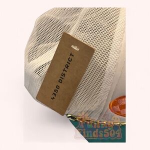 Add a pop of playful charm to your look with this brand new, tags attached Peachy C trucker hat. Features a vibrant embroidered design with a bold peach motif, smiley sunflower, and colorful hearts for that perfect retro-groovy vibe. Crisp white front panels contrast with a turquoise bill and mesh back, finished with a gold chain detail across the brim. Adjustable snapback closure ensures a comfortable fit for most head sizes.