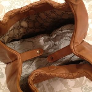 NWT Peanut Leather Woven Handbag