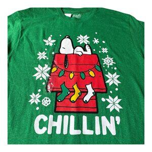 NWT Peanuts “Chillin’” Snoopy Christmas T-Shirt Green Holiday Tee M