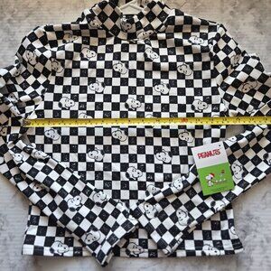 NWT Peanuts Snoopy Checkerboard Long-Sleeve Mock Neck Top Black/White Size M