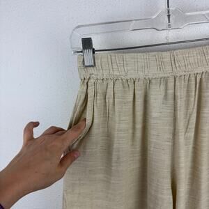 Linen & cotton blend, pull-on, elastic waistband, wide & cropped leg, gauzy-feel fabric, pockets, size XS/S.