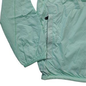 Mint green color, hooded with draw cords, full zip closure in the front, long sleeves