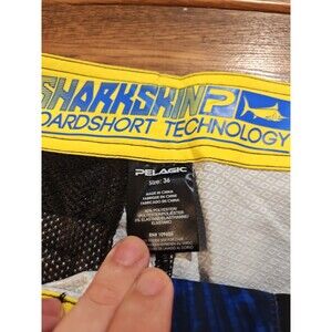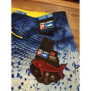 NWT Pelagic Psycho Blue Sharkskin Mens Size 36 Board Shorts Performance Stretch