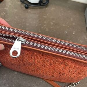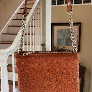 NWT Pelcor Portugal Brown Cork Skin Vegan Silver Chain Strap Crossover Purse