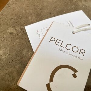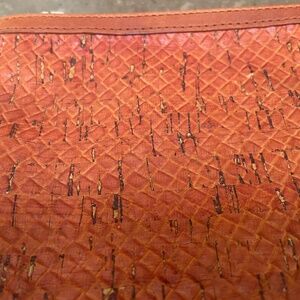 This is a brand new purse by Pelcor. It is made from genuine cork. It has 2 zippered compartments and a 19" long strap. The purse measures 8' long, 5.5" height.