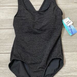 Elevate your swimwear game with this NWT Penbrooke Krinkle one-piece swimsuit in size 16D The athletic style swim top with an active back strap type is perfect for the woman who wants to look and feel great in the water.