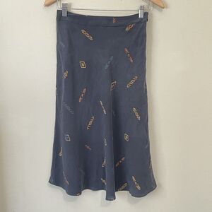 NWT Pendleton 100% Silk Midi Skirt Size 2 Washable Flare Blue Aztec Side Zip