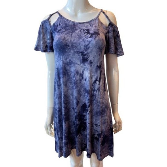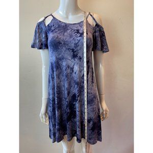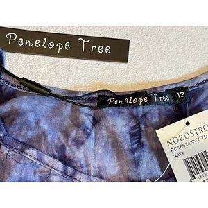 NWT Penelope Tree Womens Shift Dress Tie Dye Round Neck Short Sleeve Navy SZ 12