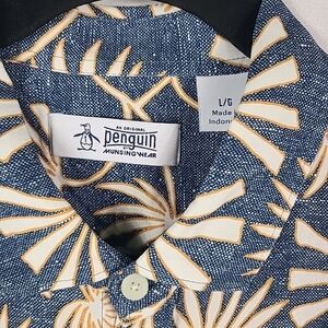 NWT Penguin Men's Blue Wing Teal Viscose Short Sleeve Shirt Size L Retail $95