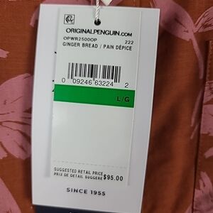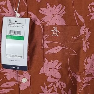 NWT Penguin Men's Cotton Viscose Orange Pink Short Sleeve Shirt Sz L Retail $95