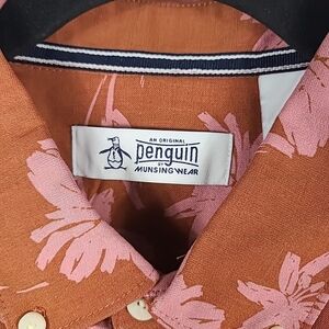 NWT Penguin Men's Cotton Viscose Orange Pink Short Sleeve Shirt Sz L Retail $95. Pit to pit 23", length 29"