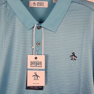 NWT Penguin Polo Shirt Men's Striped Golf Pocket Short Sleeve Blue Sz XL $70. Pit to pit 24", length 30"