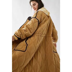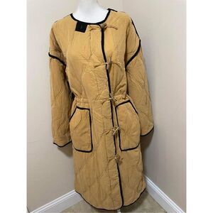 So cool and slouchy, this vintage-inspired coat is featured in an oversized, longline silhouette with quilt detailing and contrast piping border for a classic look.