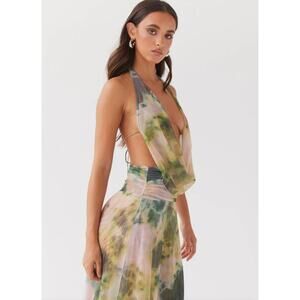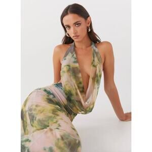 NWT Peppermayo Exclusive Elysia Rainforest Mesh Maxi Dress Halter Backless Sheer