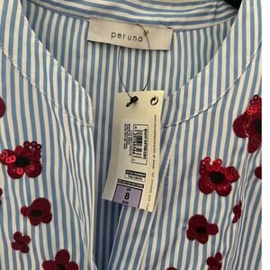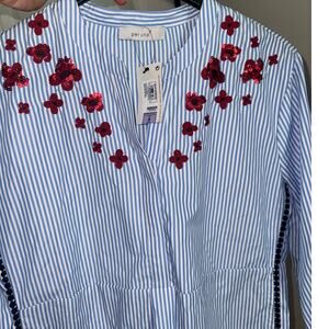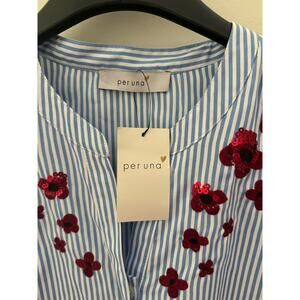 NWT Per Una 3/4 Sleeve Blue And White Striped With Rede Sequin Top UK 8 US 10