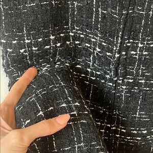 Chic black tweed midi dress. Features a fitted silhouette. Ideal for stylish outings.