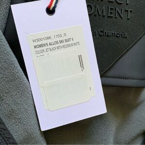 NWT Perfect moment Allos hooded striped ski suit in jet black/red/snow white