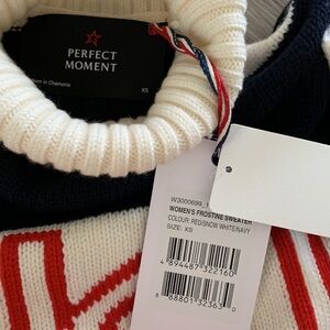 NWT Perfect moment frostine ski sweater in red/Snow White/navy